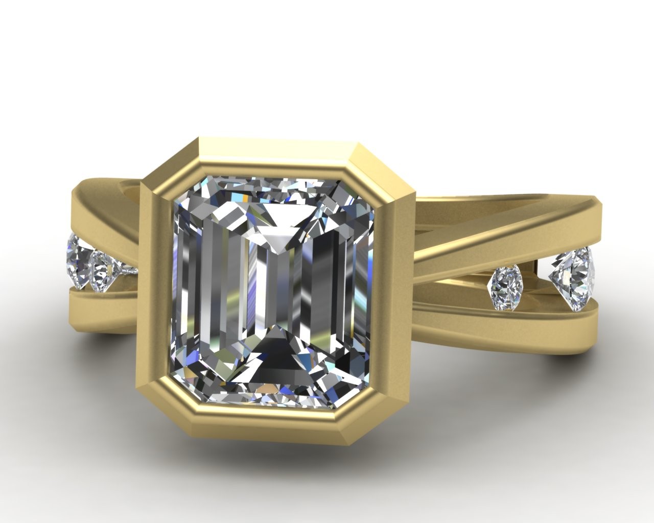 There is power in grace, and beauty in surrender. The CONCEDE ring captures this truth with a design that blends bold architecture and timeless elegance. Crafted in radiant 14k gold, its form flows with strength and sophistication, drawing the eye to the centerpiece — a mesmerizing 2 carat emerald-cut above ground diamond of exceptional brilliance. Complimented by 6 beautiful .25 carat brilliant-cut above ground diamonds.