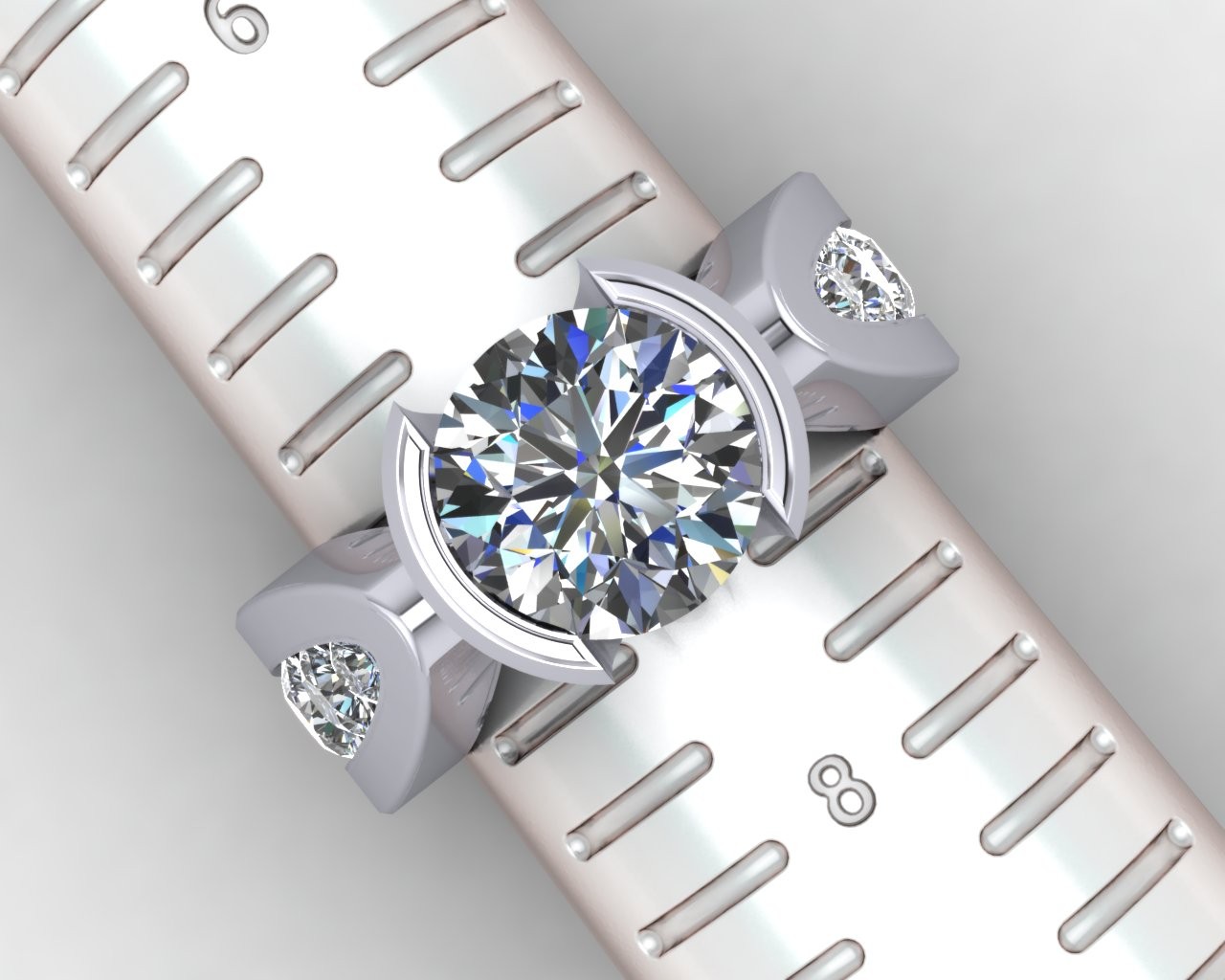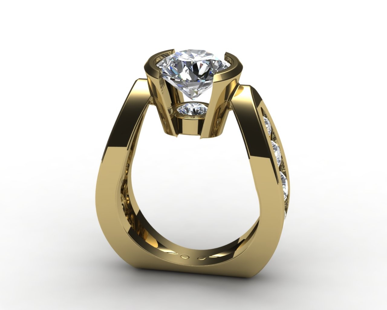 What sets this piece apart is its unique setting — elevating the diamond in a way that captures light from every angle, creating a radiant display of sparkle. Subtle accent diamonds along the band add an extra touch of refinement, while the bold gold shank offers a modern architectural feel.