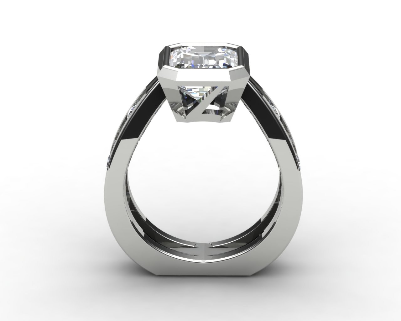The diamond, elevated in a striking modern setting, seems to rise effortlessly from the band, catching the light with every movement. Subtle curves and clean lines create harmony between strength and softness, making the piece as symbolic as it is stunning.
