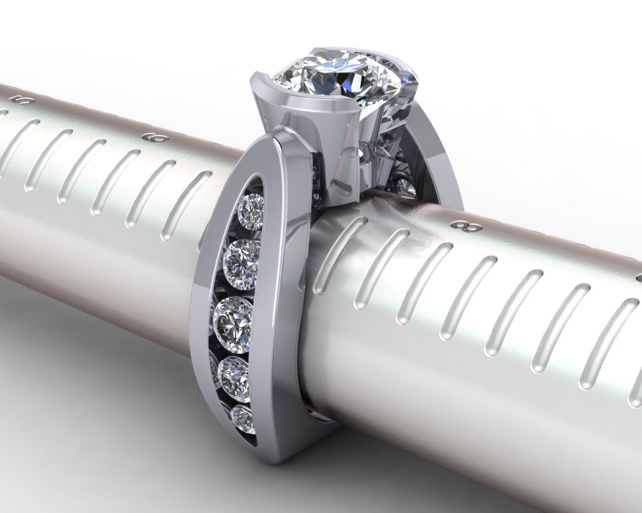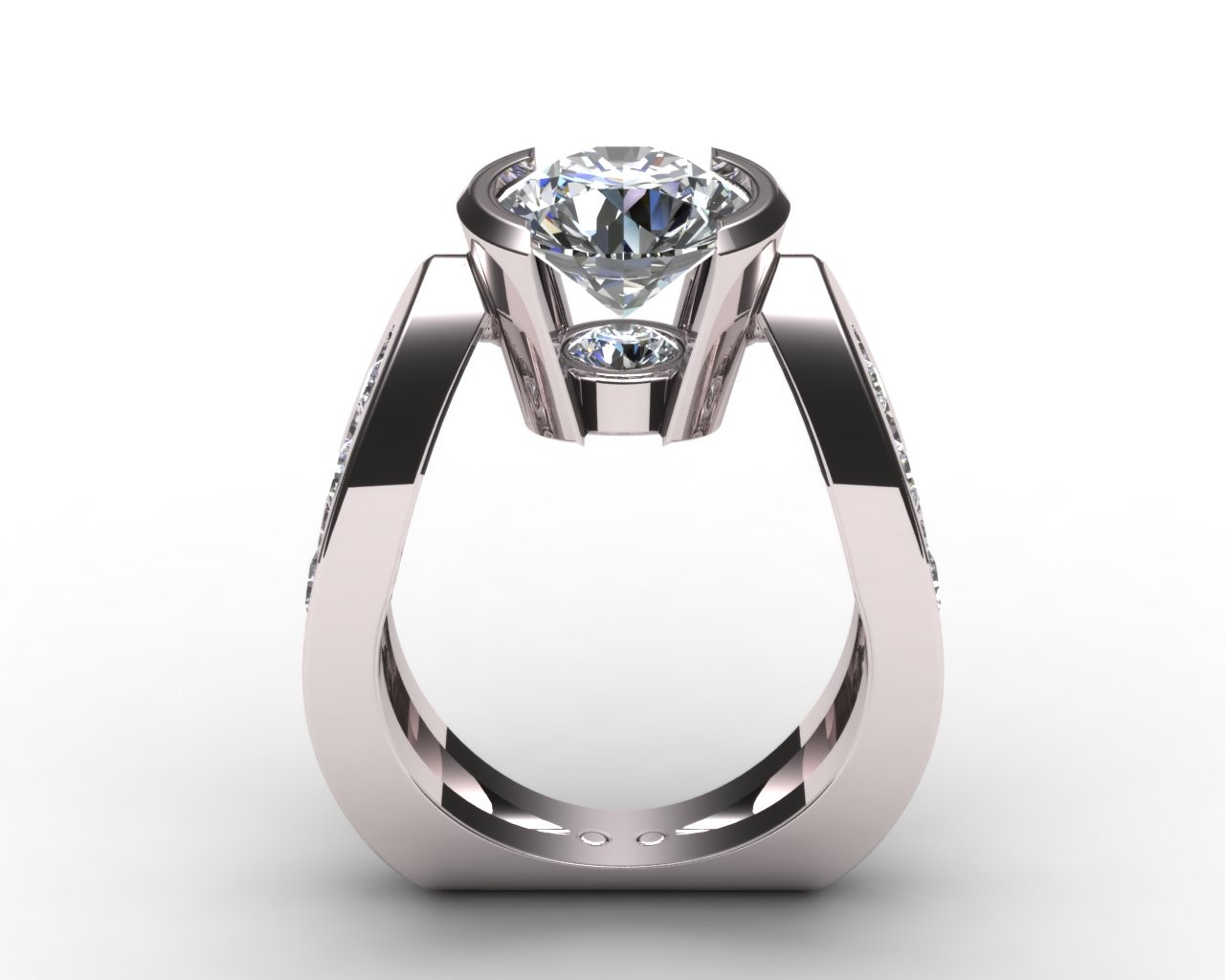 What sets this piece apart is its unique setting — elevating the diamond in a way that captures light from every angle, creating a radiant display of sparkle. Subtle accent diamonds along the band add an extra touch of refinement, while the bold gold shank offers a modern architectural feel.