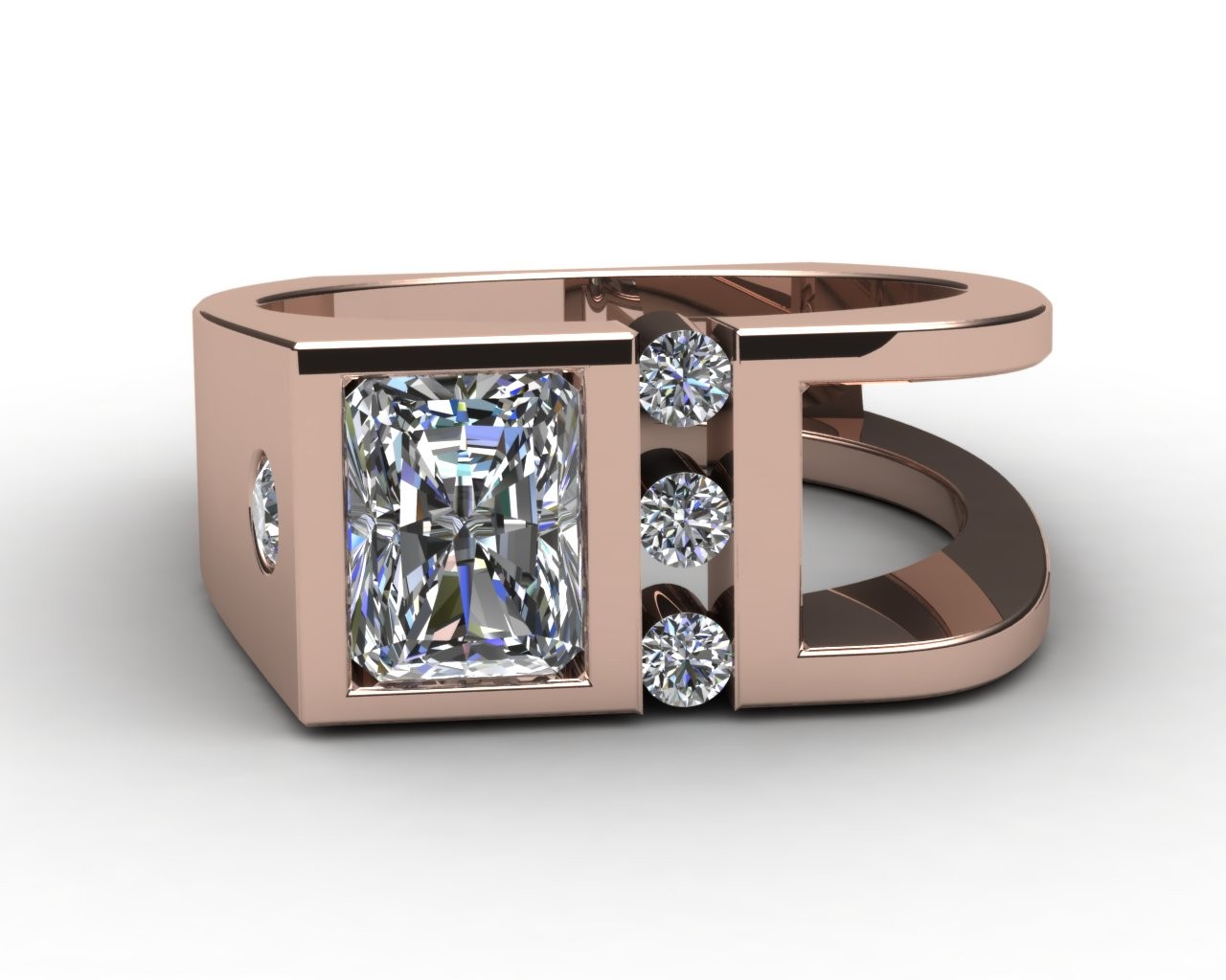 Refined and harmonious, the Cohesion ring unites modern design with timeless balance. Expertly crafted in your choice of 14k or 18k gold — available in pink, white, or yellow — this exquisite piece centers on a captivating 2.00-carat radiant-cut lab-grown diamond, admired for its graceful geometry and exceptional fire.