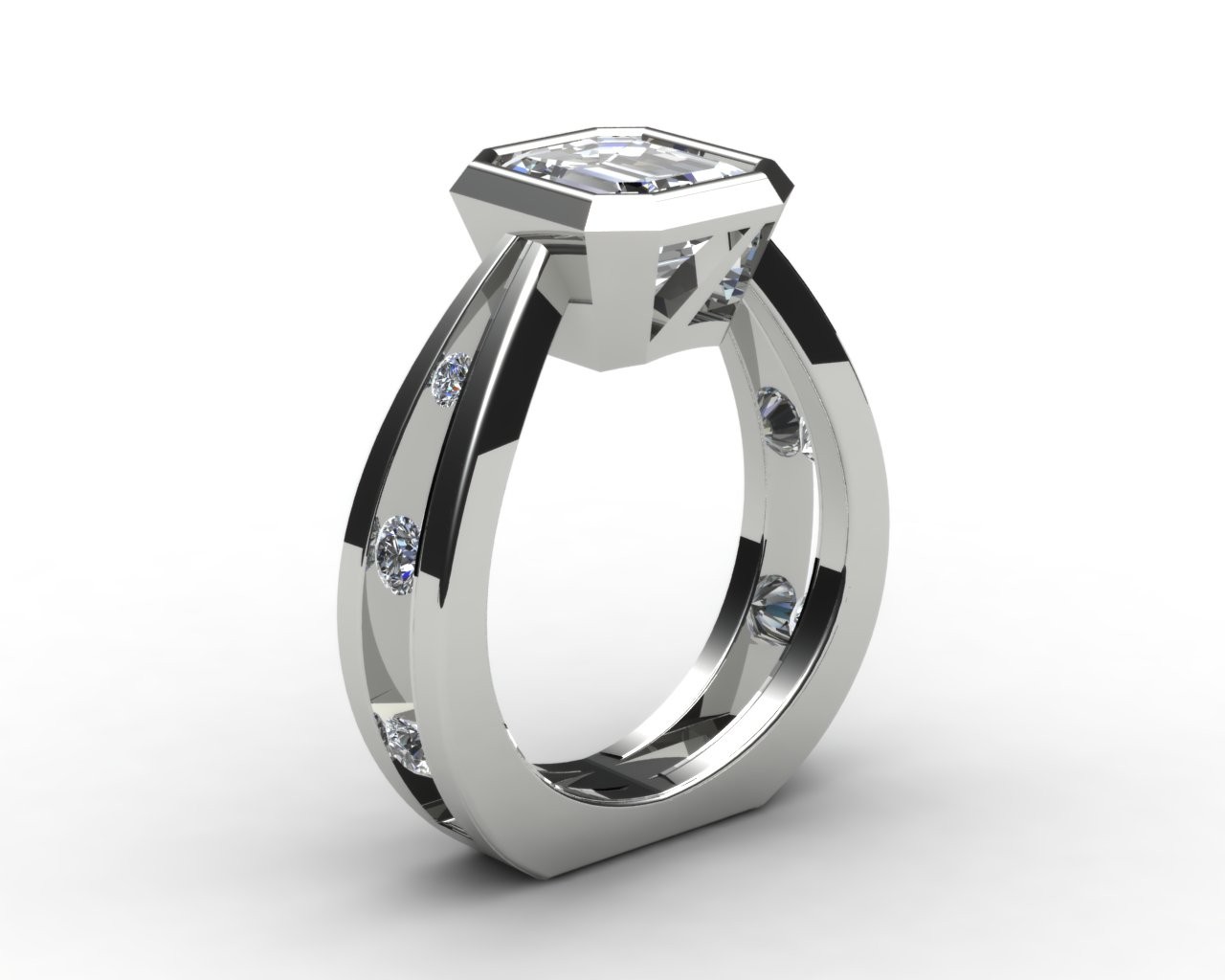There is power in grace, and beauty in surrender. The CONCEDE ring captures this truth with a design that blends bold architecture and timeless elegance. Crafted in radiant 14k gold, its form flows with strength and sophistication, drawing the eye to the centerpiece — a mesmerizing 2 carat emerald-cut above ground diamond of exceptional brilliance. Complimented by 6 beautiful .25 carat brilliant-cut above ground diamonds.