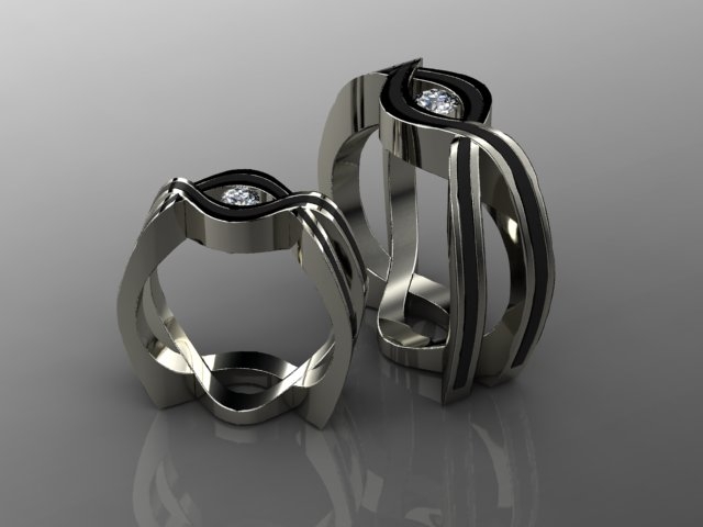 Matching Bands in 14k White gold with .15 ct Diamond VS Clarity GH Color & Black Polymer Resin Inlay. This Design can be ordered in any color gold and with other colored gemstoness. Please keep in mind, prices will vary according to the carat weight of the gold & type of gemstone.