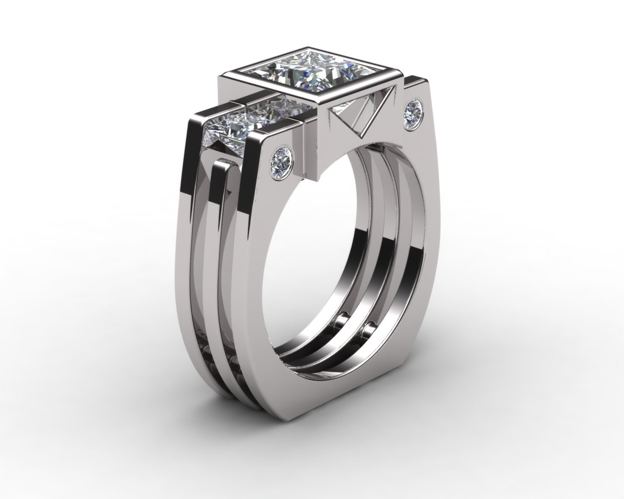 Crafted in your choice of 14k or 18k gold—available in pink, white, or yellow—Three Fold embodies modern geometry and timeless allure. At its core lies a 4.50-carat princess-cut center stone, radiating with clean symmetry and exceptional brilliance. Framed by 1.50 carats of matching princess cuts and 0.40 carats of brilliant-cut lab-grown diamonds, this design captures both structure and sparkle in perfect balance.