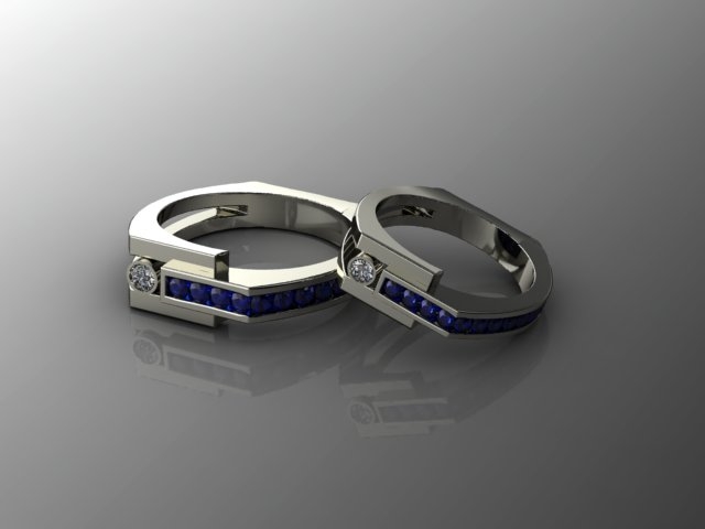 Matching Bands in 14k White Gold Ring with .25 ct Diamond SI1 Clarity GH Color with .75 ct in Blue Sapphires. This Design can be ordered in any color gold and with other colored gemstones. Please keep in mind, prices will vary according to the carat weight of the gold & type of gemstone.