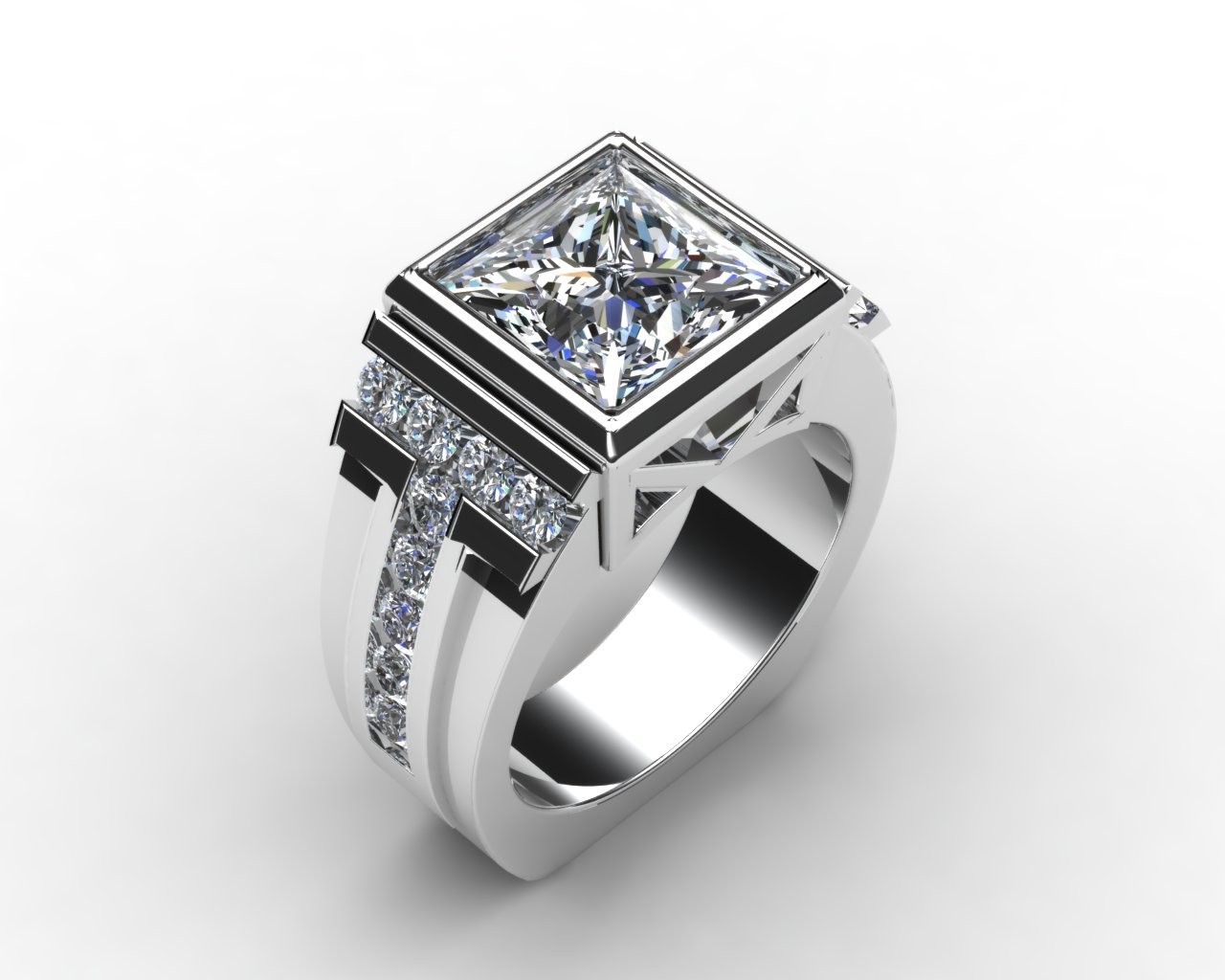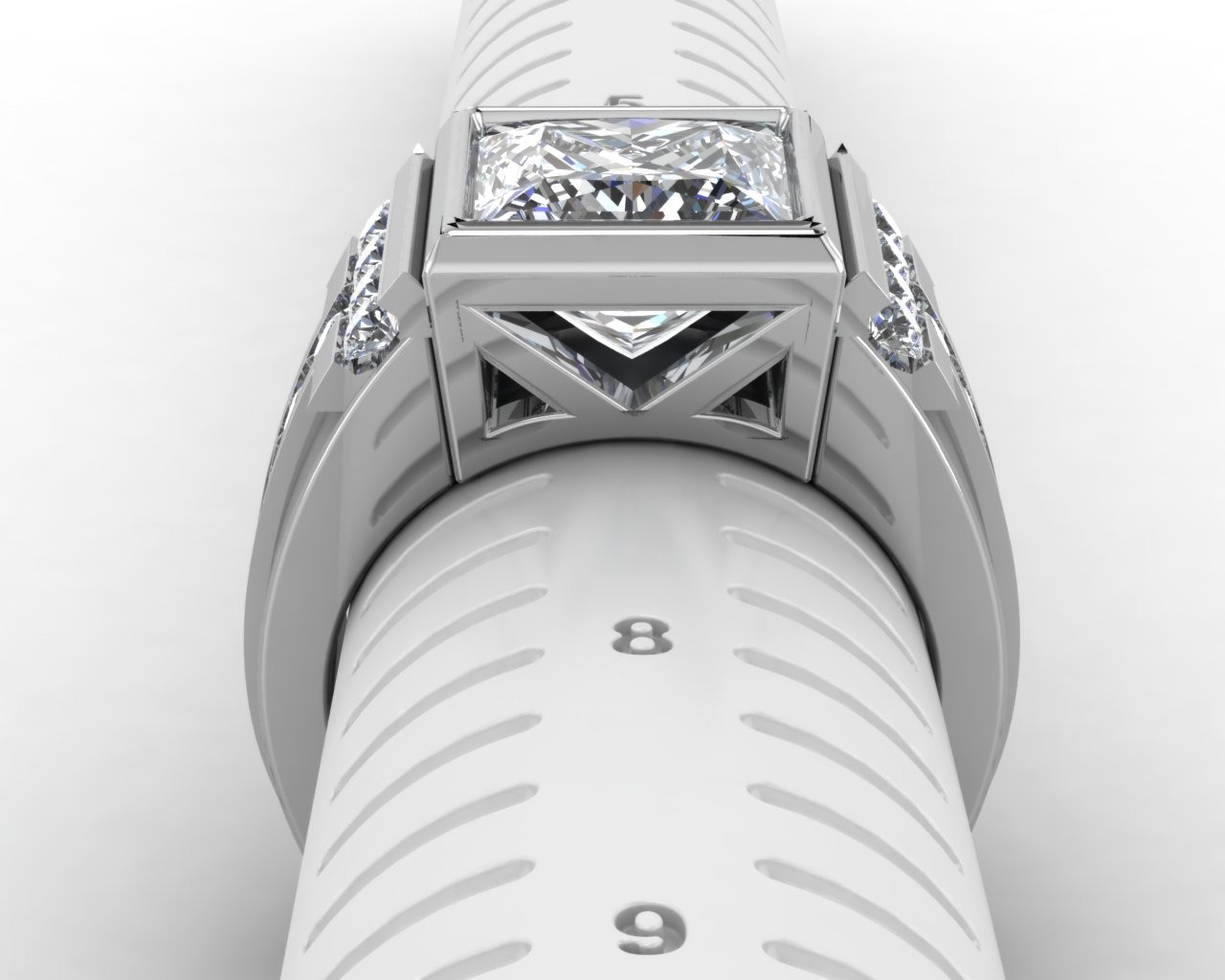 At its core lies a stunning 4.00-carat princess-cut lab-grown diamond, its sharp lines and radiant brilliance symbolizing strength and beauty. Complemented by 0.80 carats of brilliant-cut accent diamonds, each stone glimmers with VS2 clarity and D–E color or better, all IGI certified for assured excellence.