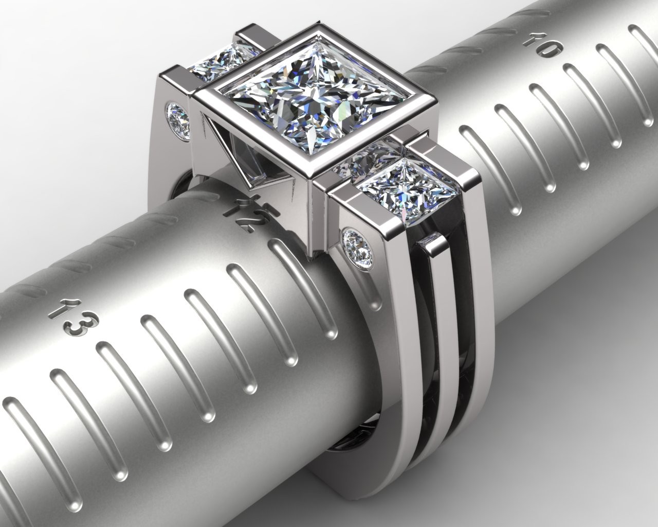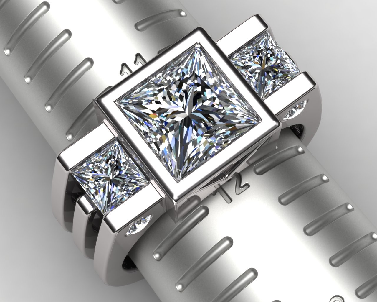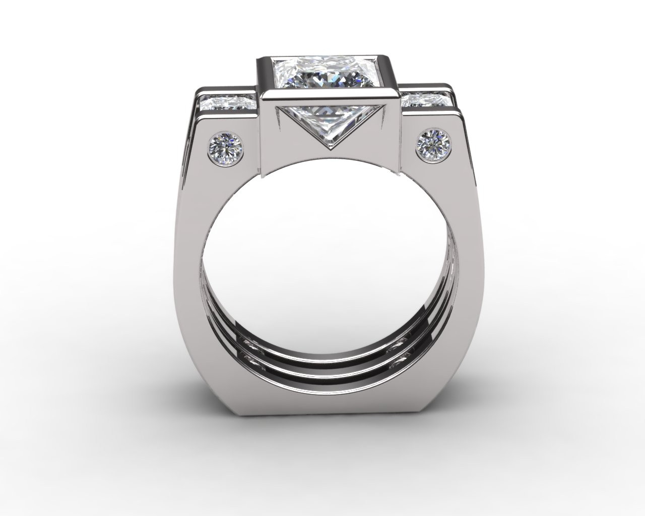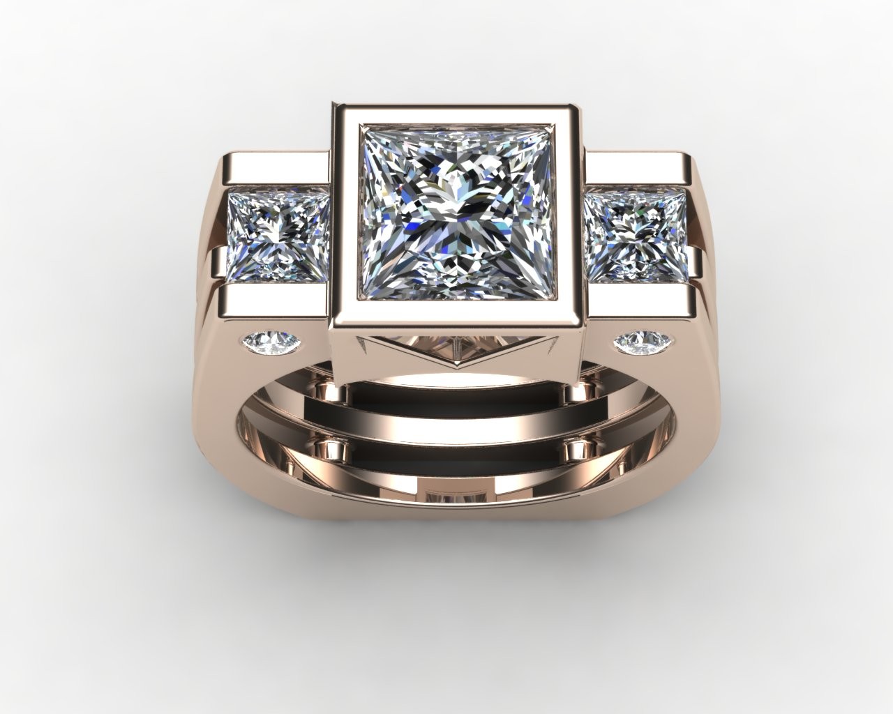 Crafted in your choice of 14k or 18k gold—available in pink, white, or yellow—Three Fold embodies modern geometry and timeless allure. At its core lies a 4.50-carat princess-cut center stone, radiating with clean symmetry and exceptional brilliance. Framed by 1.50 carats of matching princess cuts and 0.40 carats of brilliant-cut lab-grown diamonds, this design captures both structure and sparkle in perfect balance.