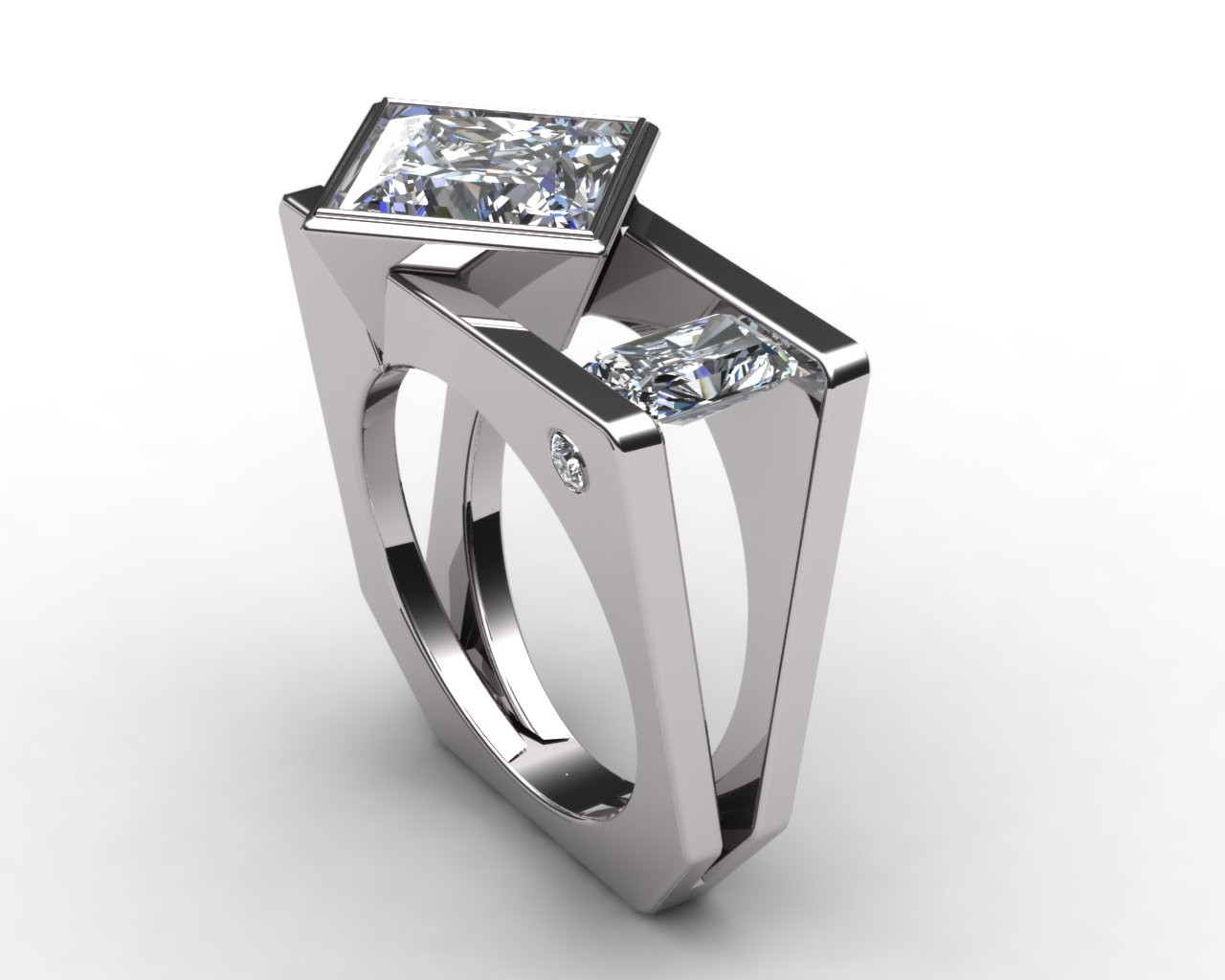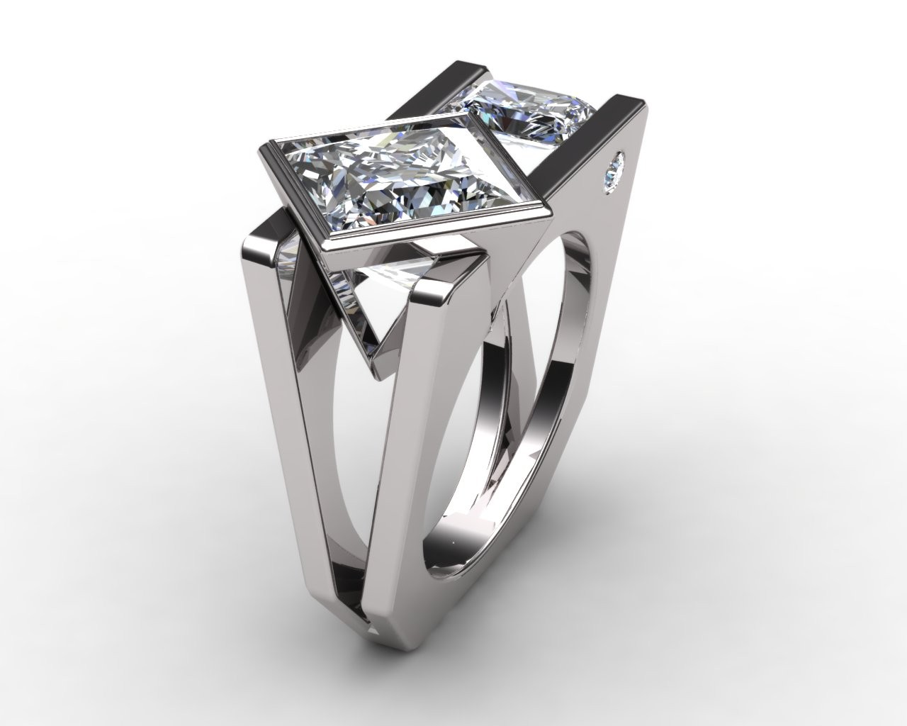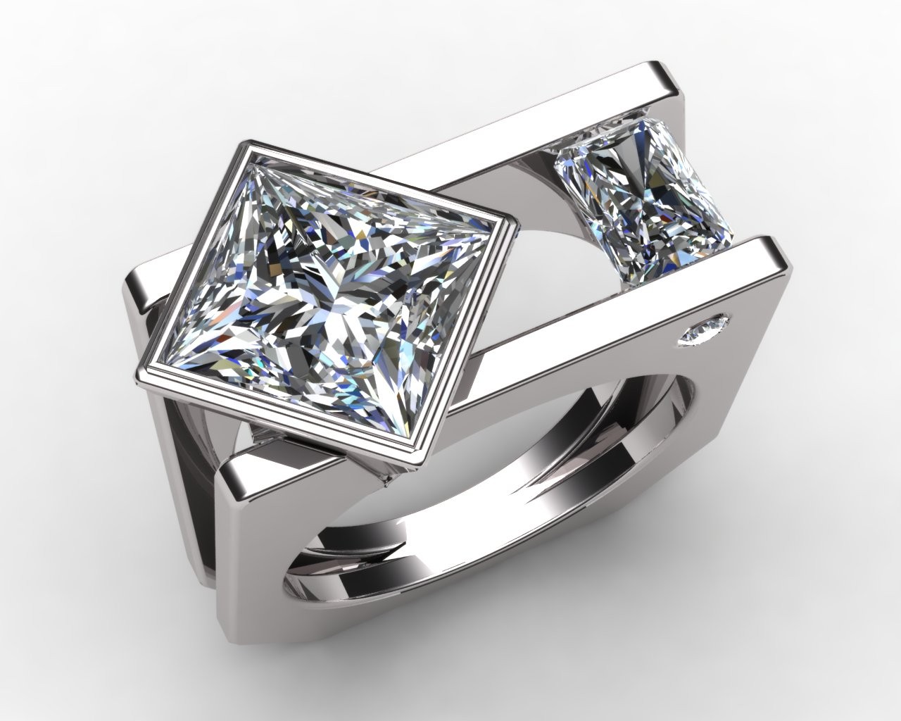 Crafted in your choice of 14k or 18k gold—available in pink, white, or yellow—Tranquil embodies balance, precision, and serenity in design. At its heart rests a commanding 4.50-carat princess-cut lab-grown diamond, perfectly complemented by 1.00 carat of radiant-cut side stones that mirror its geometric grace and fire.