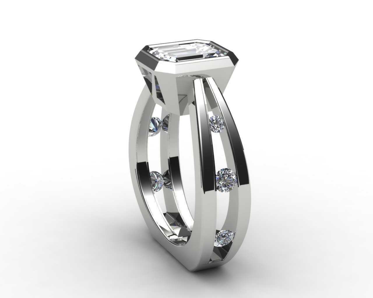 There is power in grace, and beauty in surrender. The CONCEDE ring captures this truth with a design that blends bold architecture and timeless elegance. Crafted in radiant 14k gold, its form flows with strength and sophistication, drawing the eye to the centerpiece — a mesmerizing 2 carat emerald-cut above ground diamond of exceptional brilliance. Complimented by 6 beautiful .25 carat brilliant-cut above ground diamonds.