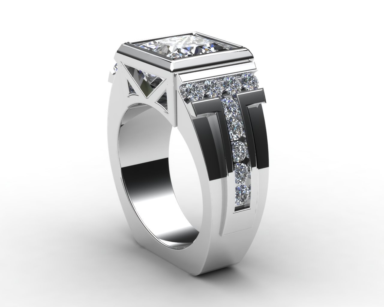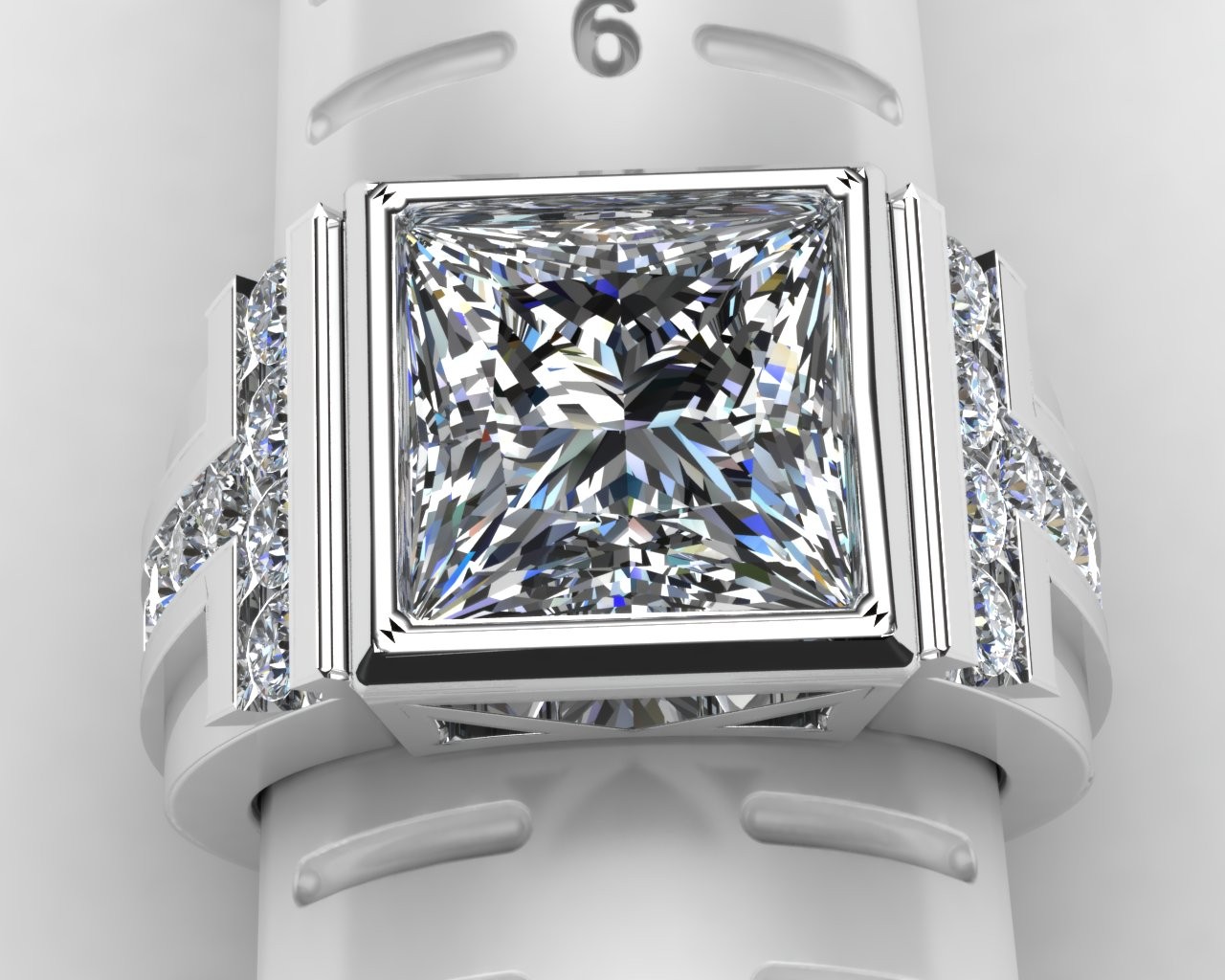 At its core lies a stunning 4.00-carat princess-cut lab-grown diamond, its sharp lines and radiant brilliance symbolizing strength and beauty. Complemented by 0.80 carats of brilliant-cut accent diamonds, each stone glimmers with VS2 clarity and D–E color or better, all IGI certified for assured excellence.