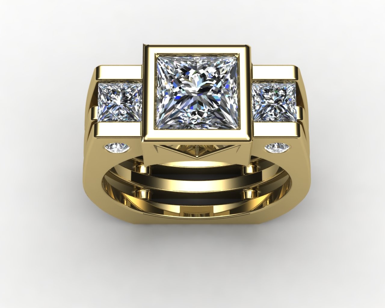 Crafted in your choice of 14k or 18k gold—available in pink, white, or yellow—Three Fold embodies modern geometry and timeless allure. At its core lies a 4.50-carat princess-cut center stone, radiating with clean symmetry and exceptional brilliance. Framed by 1.50 carats of matching princess cuts and 0.40 carats of brilliant-cut lab-grown diamonds, this design captures both structure and sparkle in perfect balance.
